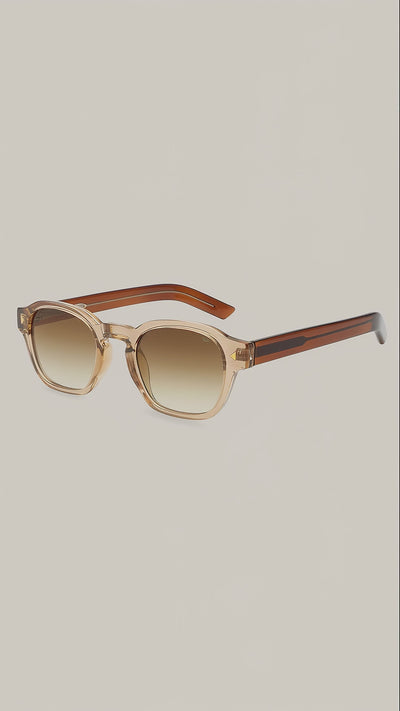 نظارات شمسية مصنوعة من مادة CP المتينة، تتميز بإطار أصفر فاتح وعدسات متدرجة اللون البني. صُممت هذه النظارات لتوفير الراحة وخفة الوزن، وهي مثالية للاستخدام اليومي، حيث تُضفي لمسة عصرية أنيقة مع توفير رؤية سلسة وأناقة طبيعية.